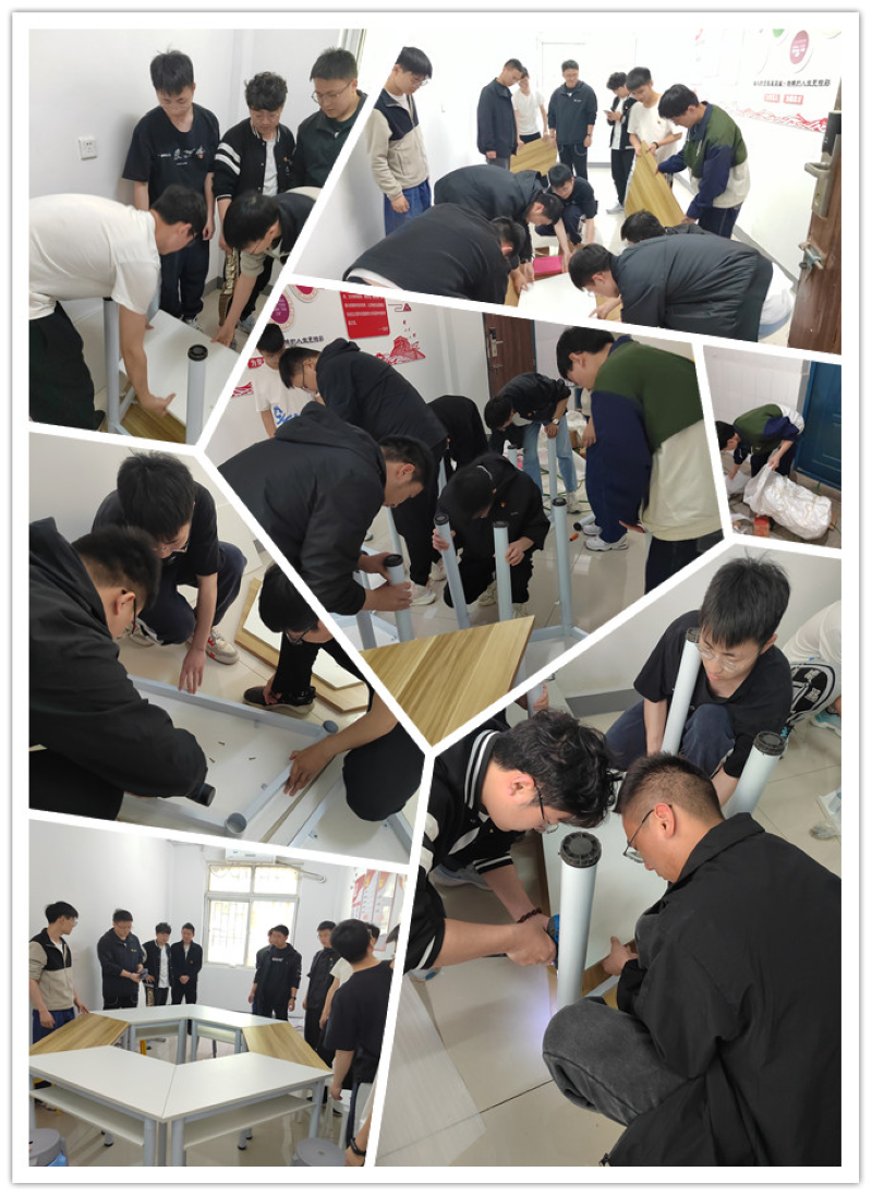 按照本次主题党日活动的安排,支部三年级学生党员负责从快递中心将购置家具配件搬运至社区服务中心,支部四年级学生党员负责安装调试。支部所有党员分成四人一组,对照安排说明和视频,经过两个小时的工作,成功将所有家具组装完成。