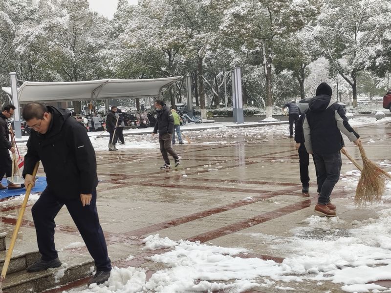 突如其来的大雪使美丽的江城芜湖银装素裹,披上银装的新利官网app校园美不胜收。在享受大自然带来无比美感的同时,积雪堆积、路面湿滑给师生出行和生活带来诸多不便。为了确保师生校园出行安全、切实展现师生党员在需要的关键时刻挺身而出的责任担当,同时以切实行动给新发展党员上一次生动活泼的实践课,学院党委积极响应学校“清扫积雪行动”倡议,迅速动员部署,把师生党员动员起来,发挥师生党员的先锋模范作用。12月19日上午,学院党委组织党员,开展了以C座实验楼为中心的校园清扫积雪志愿服务行动,以守护师生平安出行。