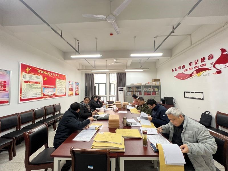 张明首先介绍了建筑工程学院本科教育教学审核评估自评自建过程,学院教学资料归档及教师反馈整改情况。随后,专项检查组全面检查了学院近三年试卷、毕业设计(论文)等教学档案资料。经检查,专家组对建筑工程学院在教学资料规范性等方面给予了充分肯定,并提出了宝贵的反馈意见和建议。