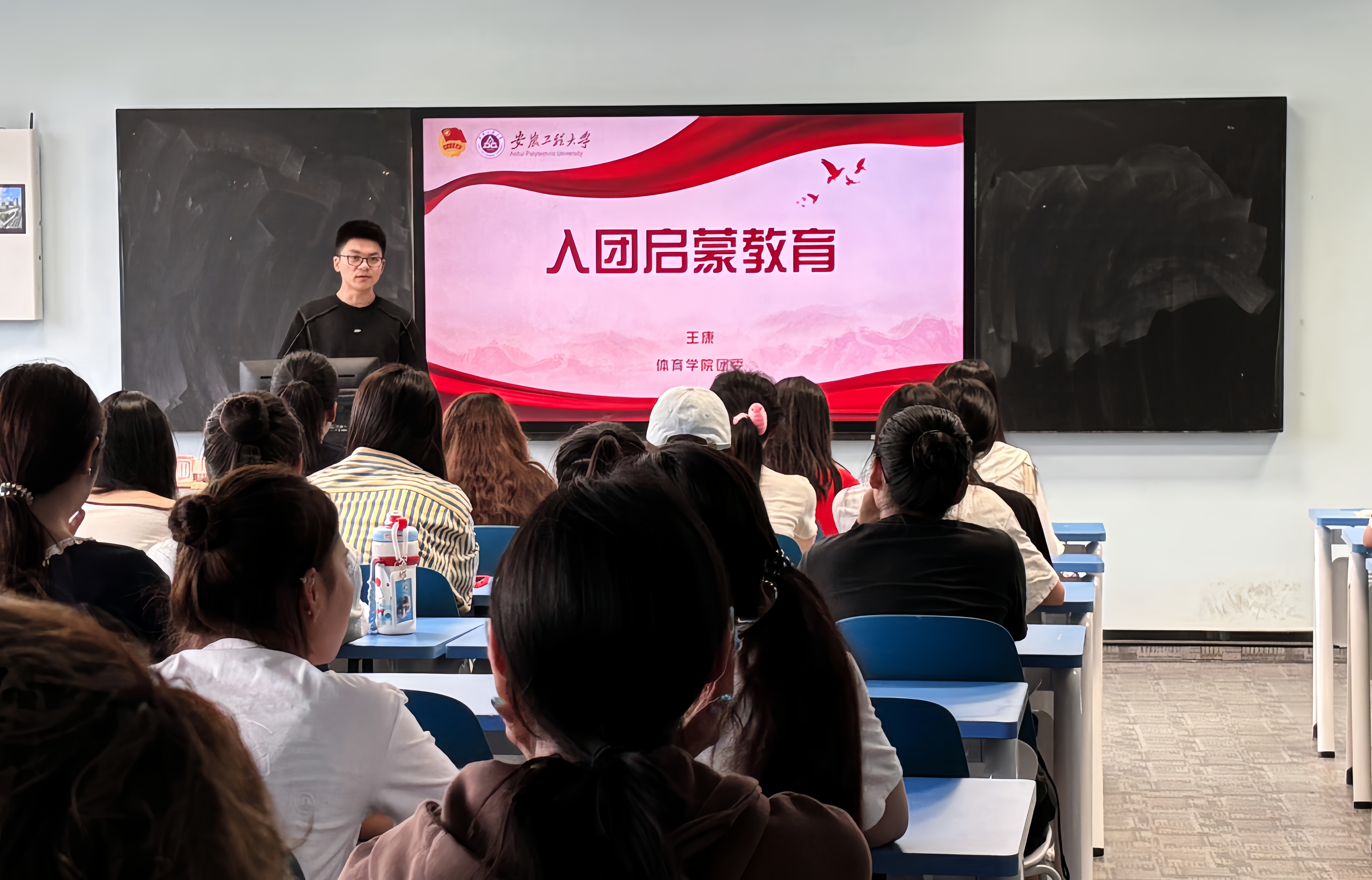 为加强青年学生思想政治引领,夯实团员发展工作基础,引导广大青年积极向团组织靠拢,体育学院于2025年9月29日在6教305教室成功举办了入团启蒙教育讲座。学院团委副书记王康担任主讲,2025级全体新生参加了此次学习。