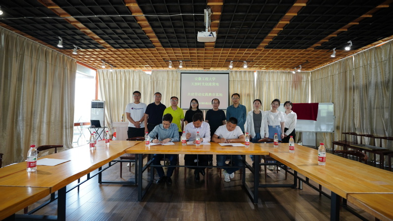 本网讯 5月22日,由学校教务处、体育学院与芜湖市湾沚区天源时光创意营地共建的校外劳动教育实践基地正式揭牌。教务处副处长夏登峰、体育学院院长胡好、天源时光营地负责人陶志翔签署合作协议,并共同为实践基地揭牌,体验产业学院执行院长薛保红率团队师生出席了此次揭牌仪式。