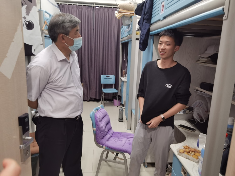 “家乡是哪儿的?”“考上了哪所学校?”“工作签了哪个单位?”“准备什么时候离校?”……每到一个宿舍,张志宏和王绍武都与毕业生亲切交谈,细致了解毕业生的升学就业状况、生活近况、行程安排、未来打算等。
