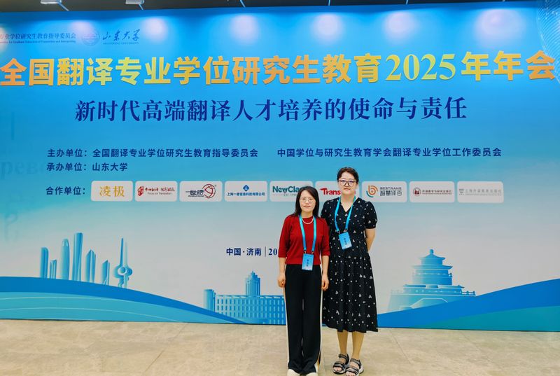 本网讯 5月18日,全国翻译专业学位研究生教育2025年年会在山东济南盛大召开。本次年会以“新时代高端翻译人才培养的使命与责任”为主题,吸引了来自全国翻译专业学位研究生教育指导委员会委员、全国开设翻译专业的院校代表及行业专家等600余人齐聚一堂,共同探讨新时代高端翻译人才培养的新路径与新使命。外国语学院副院长韩利敏,英语系副主任杨晓丽参加此次盛会。